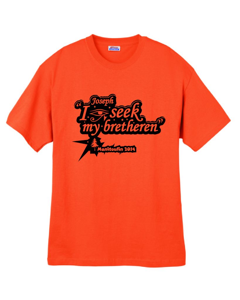 A T-shirt designed for the annual Christadelphian Youth Camp, on the theme of the Old Testament character Joseph – presented here for the first time, for your amusement only, complete with a mock advert!